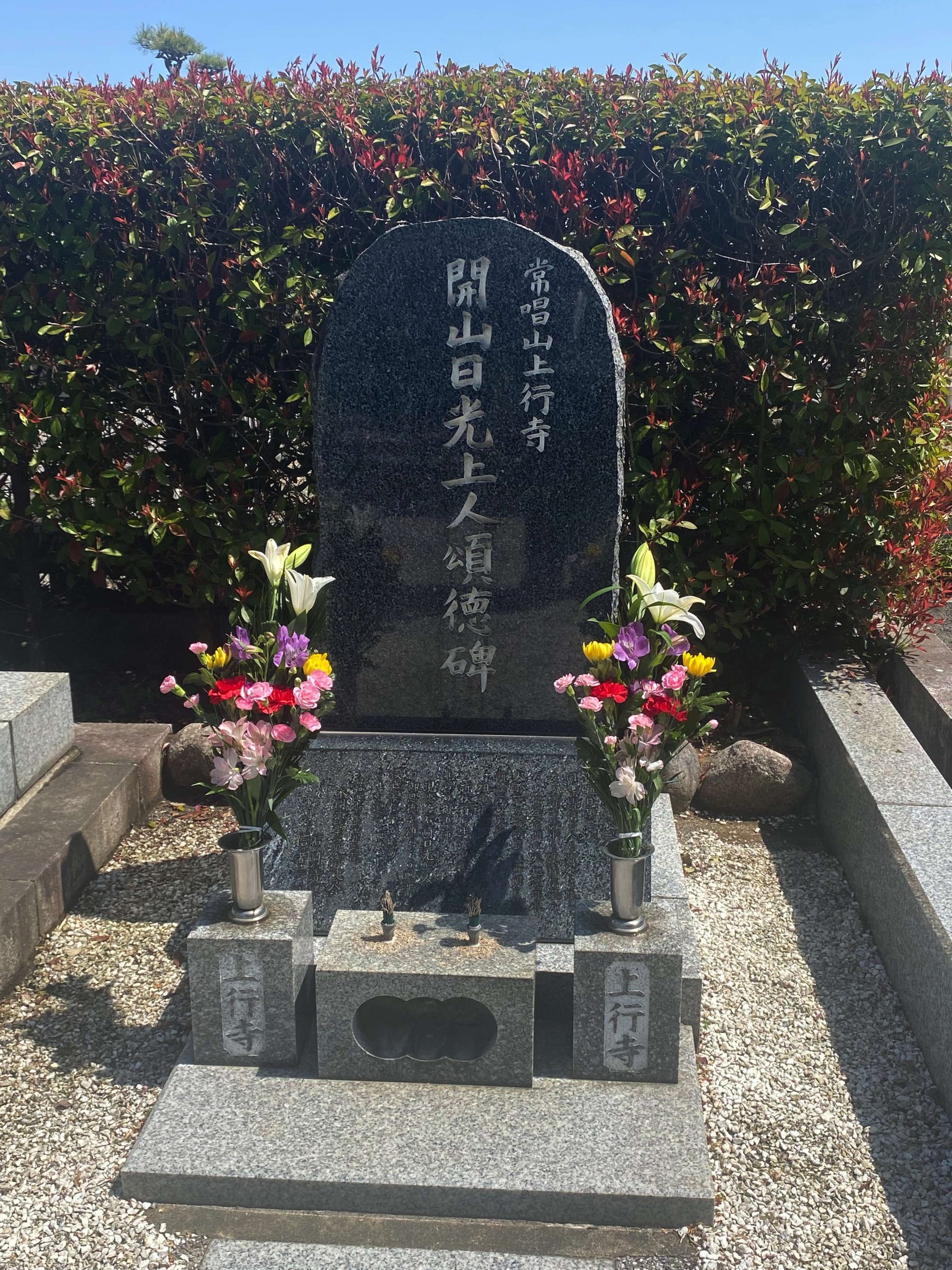 令和4年 春季八柱墓前祭 行事案内 令和4年4月13日 先週の4月10日に、春季八柱墓前祭が営まれました。当日は晴天のお計らいをいただき、心地よい日差しの中埋葬されている方への供養、そして今年帰寂されたご信者の納骨が無事営まれました。