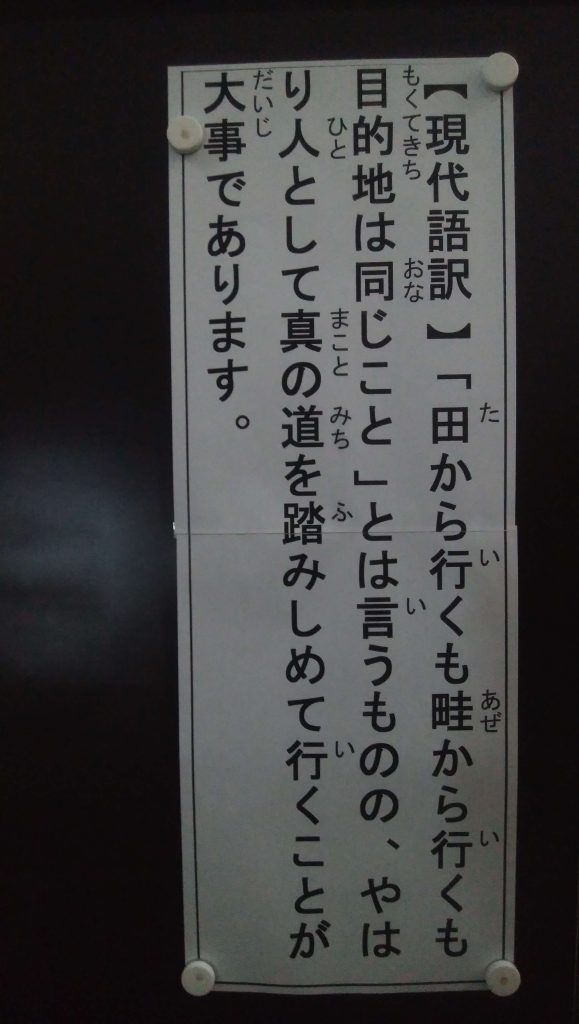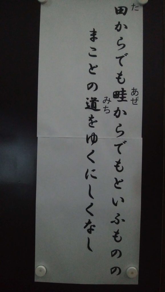 令和5年3月度 開導日扇上人御教歌 開導日扇上人御教歌 令和5年3月2日 御教歌 田からでも 畦からでもと いふものの まことの道を ゆくにしくなし 現代語訳 「田から行くも畦から行くも目的地は同じこと」とは言うものの、やはり人として真の道を踏みしめて行くことが大事であります。