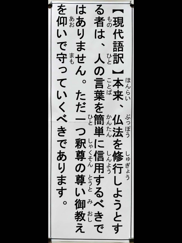 令和5年11月度 高祖日蓮大士御妙判 高祖日蓮大士御妙判 令和5年11月1日 御妙判 所詮仏法を修行せんには人の言を用ふべからず、仰で金言を守るべきなり 現代語訳 本来、仏法を修行しようとする者は、人の言葉を簡単に信用するべきではありません。ただ一つ釈尊の尊い御教えを仰いで守っていくべきであります。