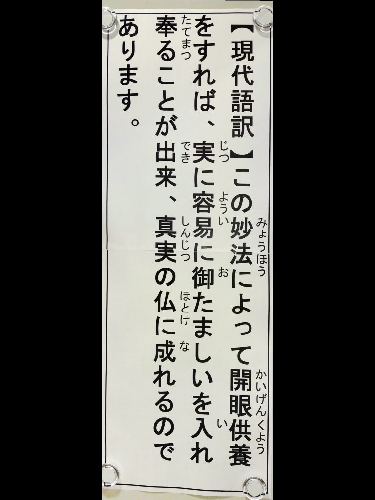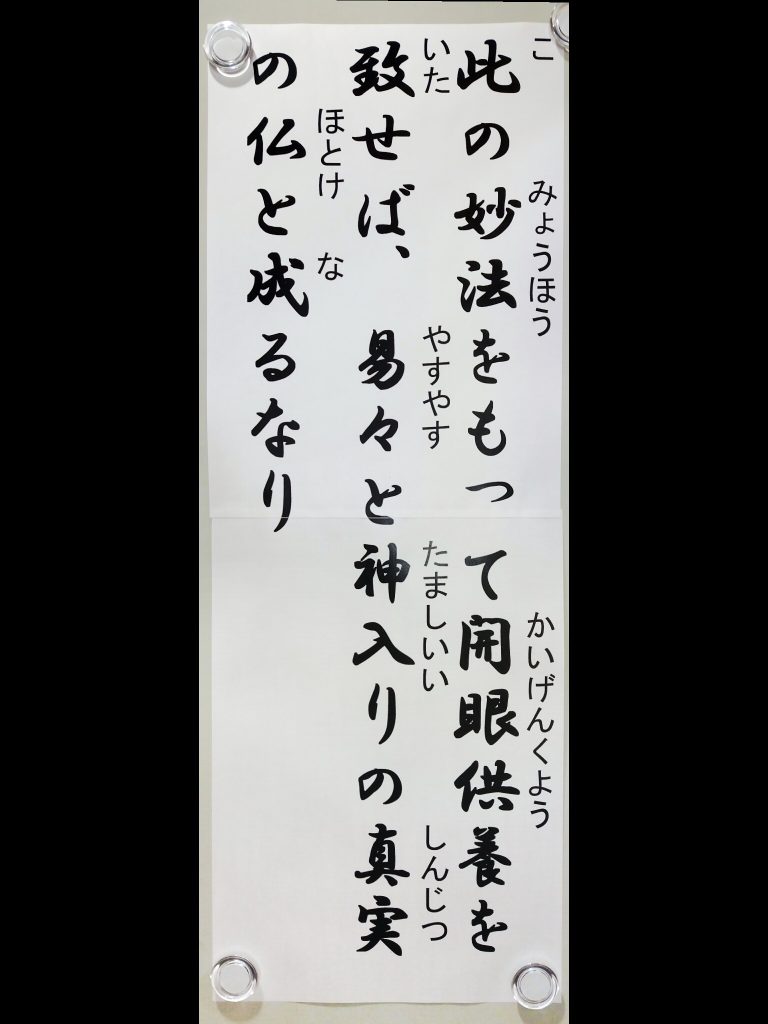 令和7年5月度 門祖日隆聖人御聖教 門祖日隆聖人御聖教 令和7年5月3日 御教歌 此の妙法をもって開眼供養を致せば、易々と神(たましい)入りの真実の仏と成るなり 現代語訳 この妙法によって開眼供養をすれば、実に容易に御たましいを入れ奉ることが出来真実の仏に成れるのであります。