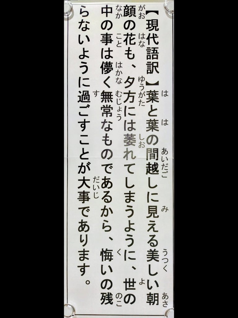 世の中の事は儚く無常なものであるから、悔いの残らないように過ごすことが大事であります。