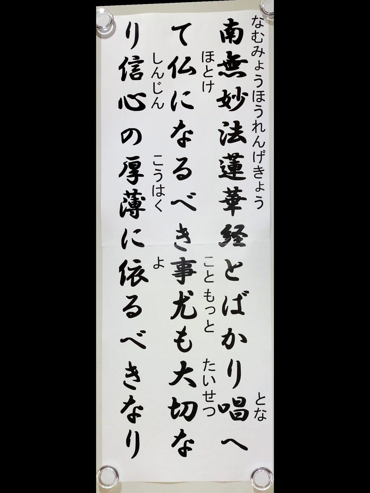 令和7年11月度 高祖日蓮大士御妙判 高祖日蓮大士御妙判 令和7年11月2日 御妙判 南無妙法蓮華経とばかり唱へて仏になるべき事尤も大切なり信心の厚薄に依るべきなり 現代語訳 南無妙法蓮華経と一心にお唱えして仏に成ることが一番大切な事であり仏に成る為には信ずる心が厚いか薄いかによるものであります。