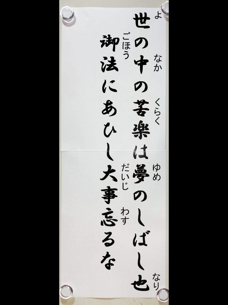 世の中の 苦楽は夢の しばし也 御法にあひし 大事忘るな