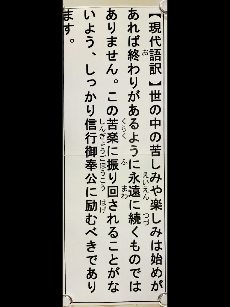 この苦楽に振り回されることがないよう、しっかり信行御奉公に励むべきであります。
