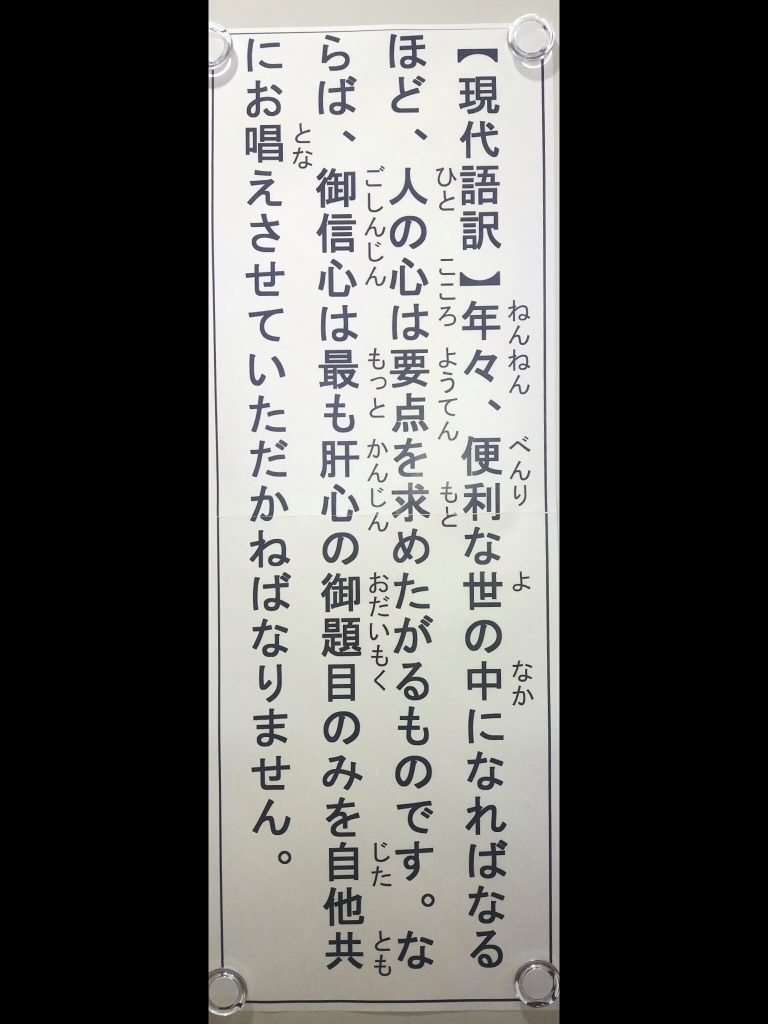 令和8年1月 開導日扇上人御教歌 開導日扇上人御教歌 令和8年1月3日 御教歌 去年(こぞ)よりも 今年は心 短くて 唯肝要を 好む世の中 現代訳 年々、便利な世の中になればなるほど、人の心は要点を求めたがるものです。ならば信心は最も肝心の御題目のみを自他共にお唱えさせていただかねばなりません。